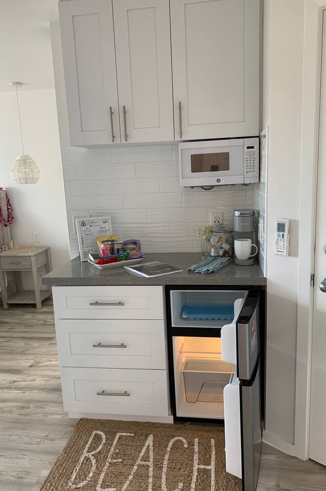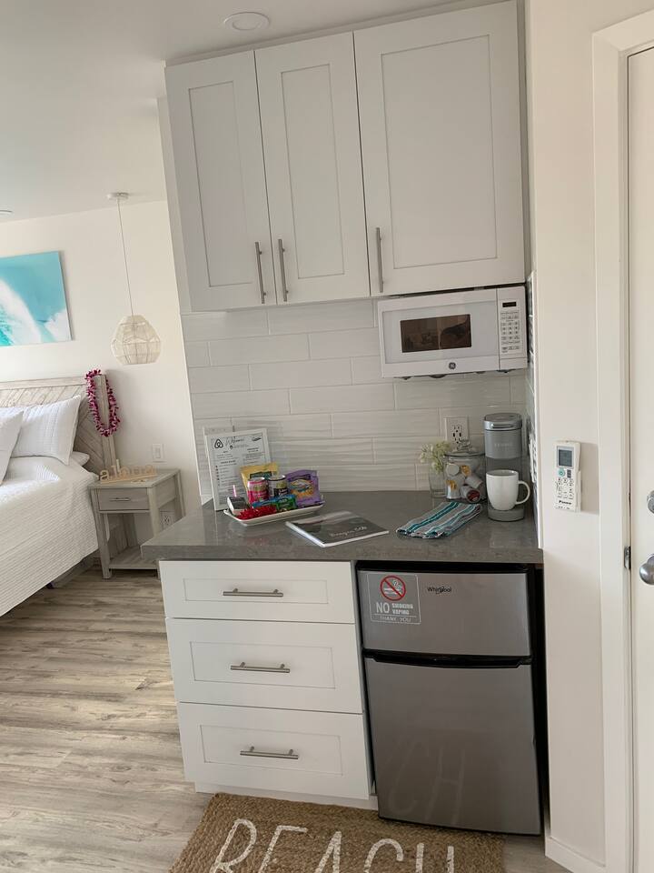 Our remodeled 250 square foot studio with kitchennette is one of the most stylish at the Maui Banyan. Steps away from Kama’ole Beach II in the heart of South Kihei within walking distance to world-class beaches, shopping and amazing restaurants. We’re located on the third floor where you can enjoy your morning coffee on a private shaded lanai (balcony) while taking in peek-a-boo views of the ocean & Haleakala. The studio has a smart TV, upgraded wifi, a quiet split air conditioning system, a kitchenette, mini fridge & freezer, microwave, toaster and coffee/tea maker. There is no full kitchen or stove in this studio unit due to fire codes & and no washer/dryer. If wanting/or needing a stove to cook or washer/dryer look at my one bedroom listing for availability. There is a one time $27.00 reservation/resort fee that is already integrated into the total nightly price when you book. The condo uses a digital keyless entry. Your code to enter is unique to you. Check in is anytime after 4pm. Check out is anytime before 11am. Every booking requires the guest to sign a rental agreement which stipulates policies and rules and will require the guest to provide a valid email and phone number. Please note unauthorized early check ins and/or unauthorized late check outs are not permitted. REGISTRATION: We will pre-register all guests via CondoControl software and a link to the registration will be sent on the day of your check-in via the condo association to the email you provide us so that you might review the information to ensure it is correct and updated. You will also be physically registering at the front desk (8AM-10PM) upon arrival. (If after hours you can register the following morning). You will be asked to provide a valid phone number and email as part of messaging and booking this condo. Providing the phone number and email is mandatory and required by the complex condo association (post Maui fire) and if not provided can result in fines. PARKING: Parking passes are given out at the Front Desk when you register and must be displayed in your vehicle. POOL: There are 2 pools at the resort and you are welcomed to use any of them. The pools are open from 9AM to 10PM. BEACH GEAR: We provide beach chairs, beach towels and a cooler bag for the beach. We do not provide umbrellas, boogie boards, snorkel equipment or beach toys, however, they can typically be rented at reasonable prices locally. Umbrellas, boards and snorkel gear have attached liability so best to rent from places who specialize and maintain them regularly. Enjoy at your own risk and discretion. TENNIS COURTS are open from 9AM to 6PM. Check with the front desk as hours may change per season. SUPPLIES: Paper goods and soap are supplied as a starter pack. Unlike a hotel, we do not replenish these items during your stay. DAMAGE DEPOSIT: Please notify us immediately of any damages to the property should they occur. Guests agree to pay a replacement value and or repair cost for any furniture, fixtures and or fitting being damaged during the term of their stay. OCCUPANCY: Condo is for 2 guests maximum. PARTY/EVENTS: No special events or parties are allowed. This includes, but is not limited to weddings, parties, and receptions. Please be informed that the condo is not childproof. SECURITY: Guests must keep all doors locked when not present. The owner and property manager are not responsible for loss, damage, or theft of any personal belongings during their stay, however caused. FLORA and FAUNA: It is common to see various insects and animals around and inside the property due to Hawaii's tropical environment. There are no refunds or cancellations from insect or animal sightings, bites or stings. Also, for those people with moderate to severe asthma and/or those who have chemical sensitivities, although we try our best to primarily use unscented detergent we can not guarantee a complete scent free experience. We provide shampoo, conditioner, shower gel and body lotion, however these items may also be a concern so if you have any sensitivities please be prepared to bring your own items. QUIET HOURS: Quiet hours are from 10PM until 8AM. This condo is separated from a next door unit by a door. Extra measures have been made to soundproof between doors however most condo units are close proximity in Maui and there may be some noise that comes through. After booking, we recommend you consult your local insurance provider or credit card provider about the benefits of travel insurance or non-refundable travel insurance. Note: State of Hawaii requires the payment of both a TAT (Transient Accommodation Tax) at 14% and GET (General Excise Tax) at 4.712% for a total of 18.712% for every guest booking. We have added these taxes to the booking. We look forward to sharing our ALOHA spirit.